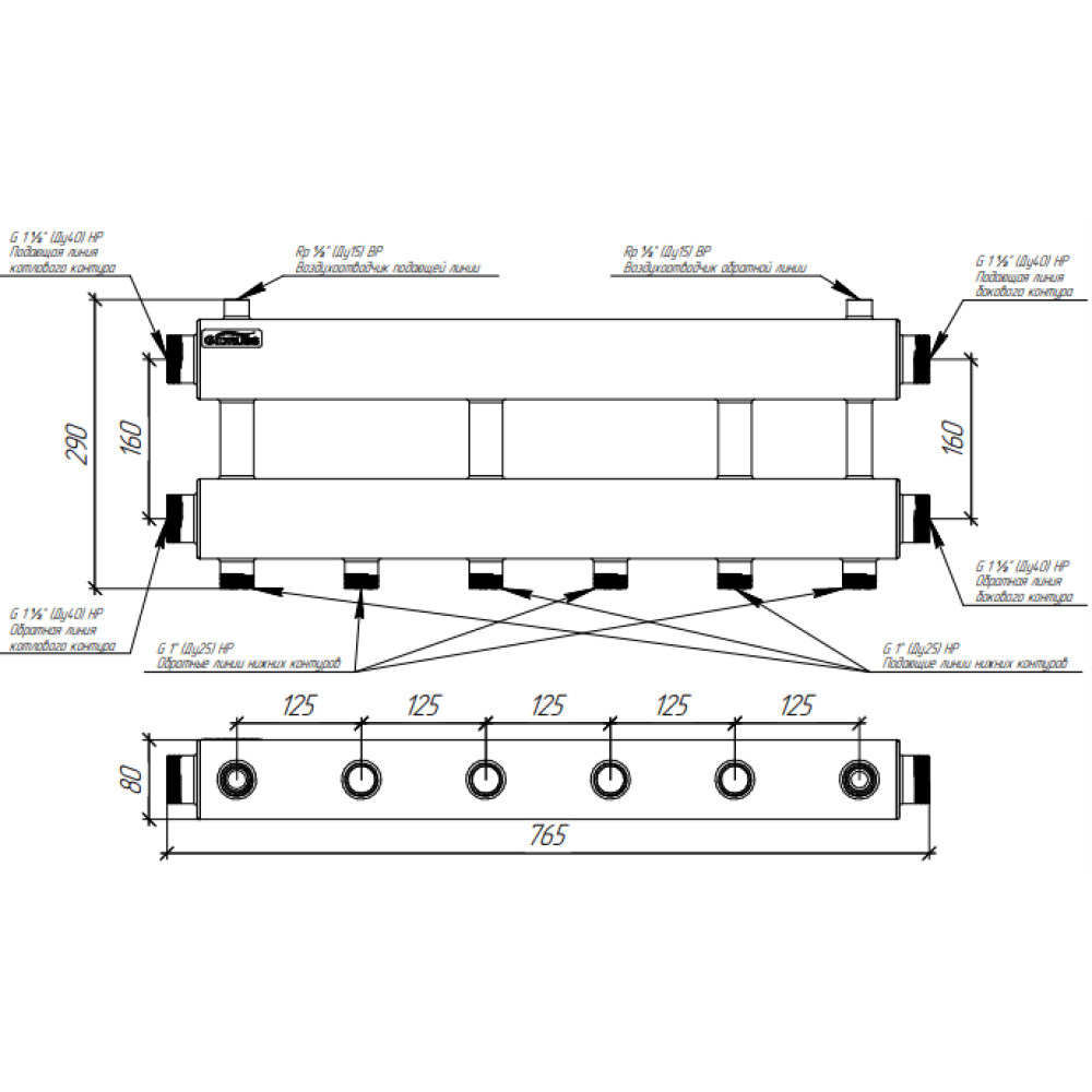 Модульный коллектор предназначен для распределения теплоносителя по контурам или его сбора в каскад для вывода на гидрострелку.