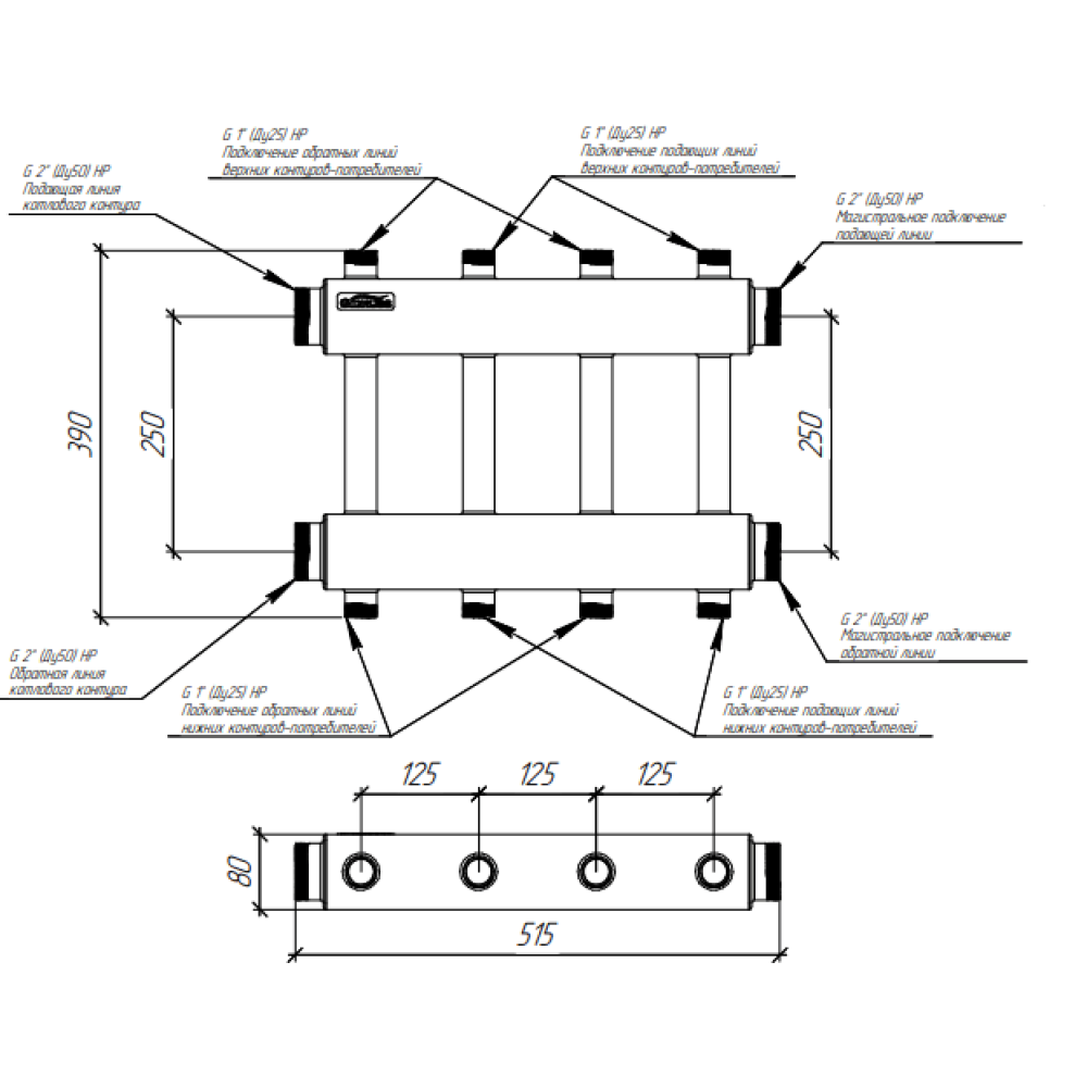 Коллектор модульный Gidruss MK-250-4DU до 250 кВт 2" 4 контура