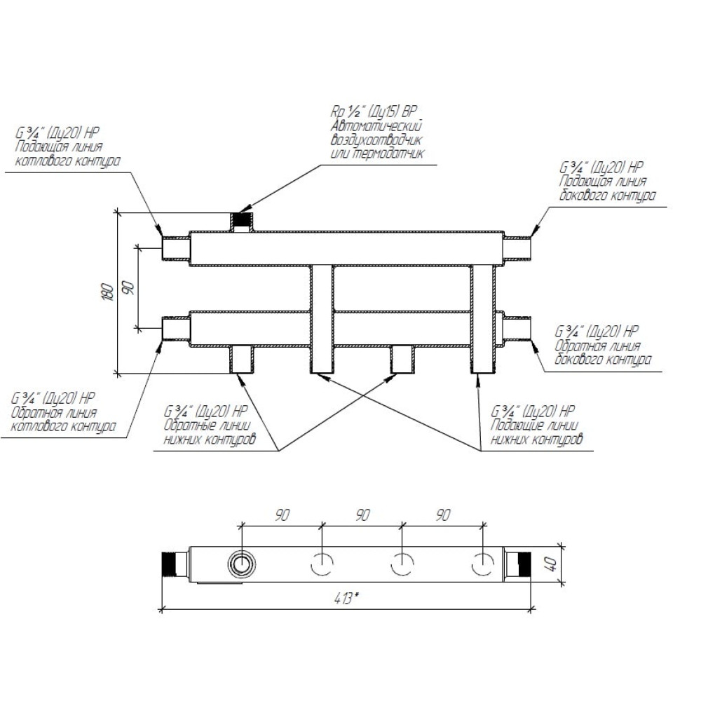 Модульный коллектор отопления предназначен для обвязки котельных в одноэтажных частных домах до 250 м² с настенным котлом до 40 кВт.