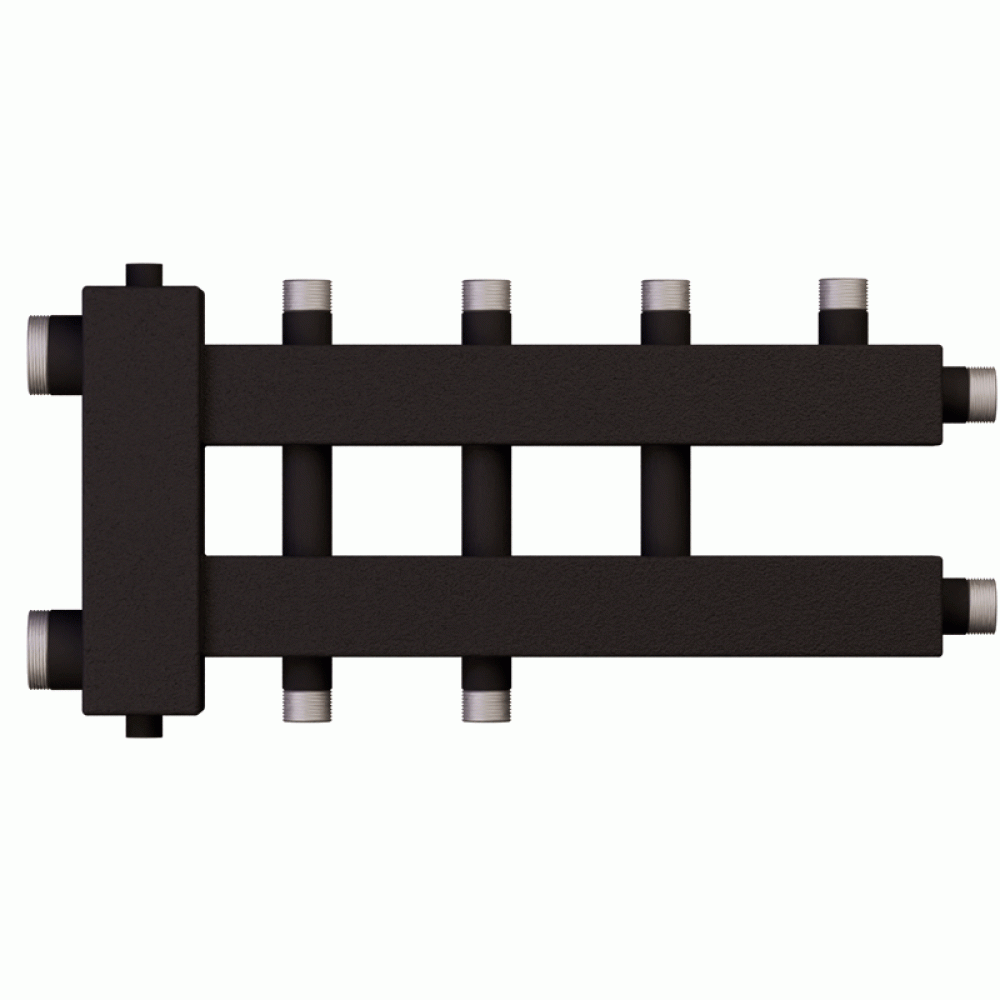 Распределительный коллектор для котла от производителя Warme состоит из двух камер подающей и обратной линий теплоносителя. Внешний вид распределительного коллектора состоит из части цельной нержавеющей профильной трубы со встроенной внутренней второй камерой, металл коллектора отшлифован, что придает эстетичный вид коллектору и не требует закрывать коллектор для котла в изоляцию или защитный кожух.