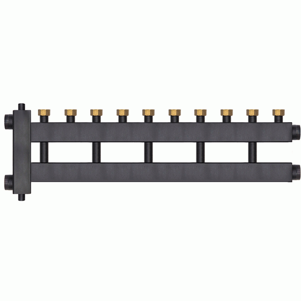 Коллектор с гидроразделителем Warme WKD.R.85.F.5+1 (черная сталь) Дублер рядный на 6 контуров до 85 кВт с накидными гайками