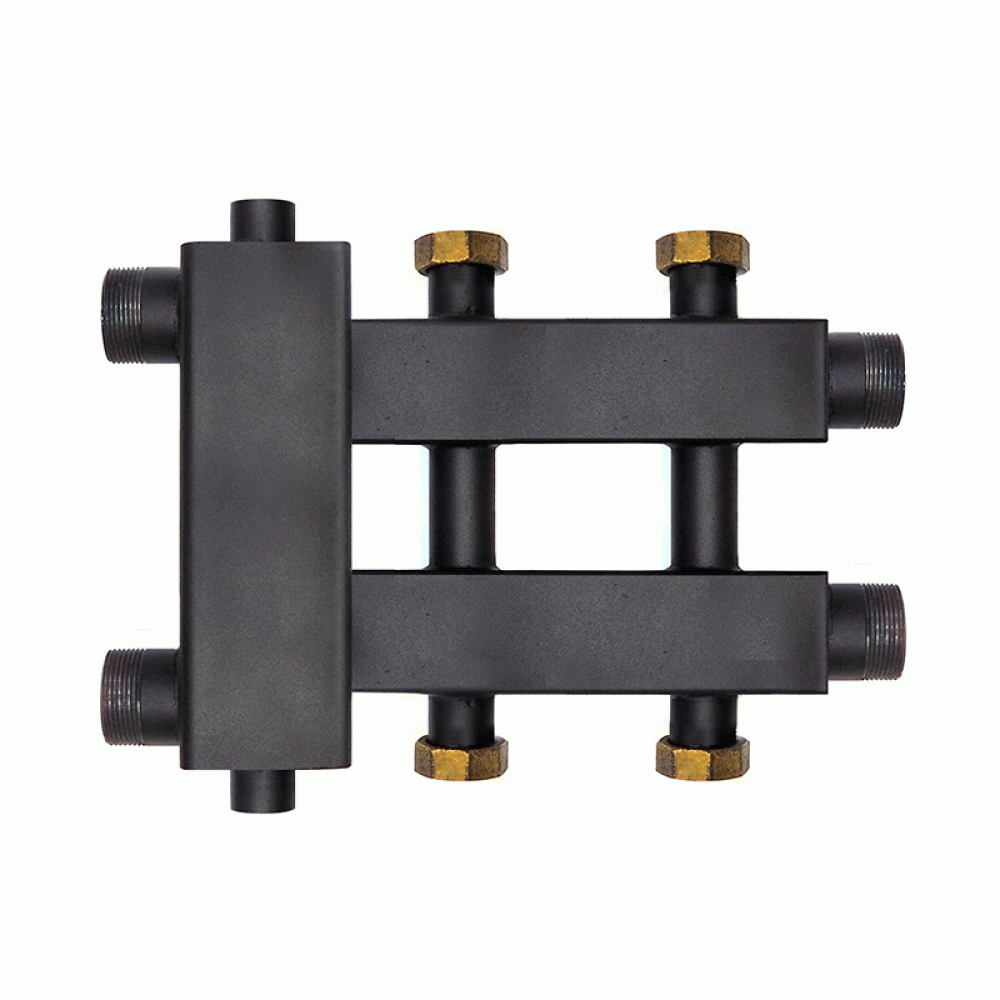 Коллектор с гидроразделителем Warme WKD.R.85.К.F.1+1+1 (Дублер компакт) черная сталь на 3 контура до 85 кВт с накидными гайками