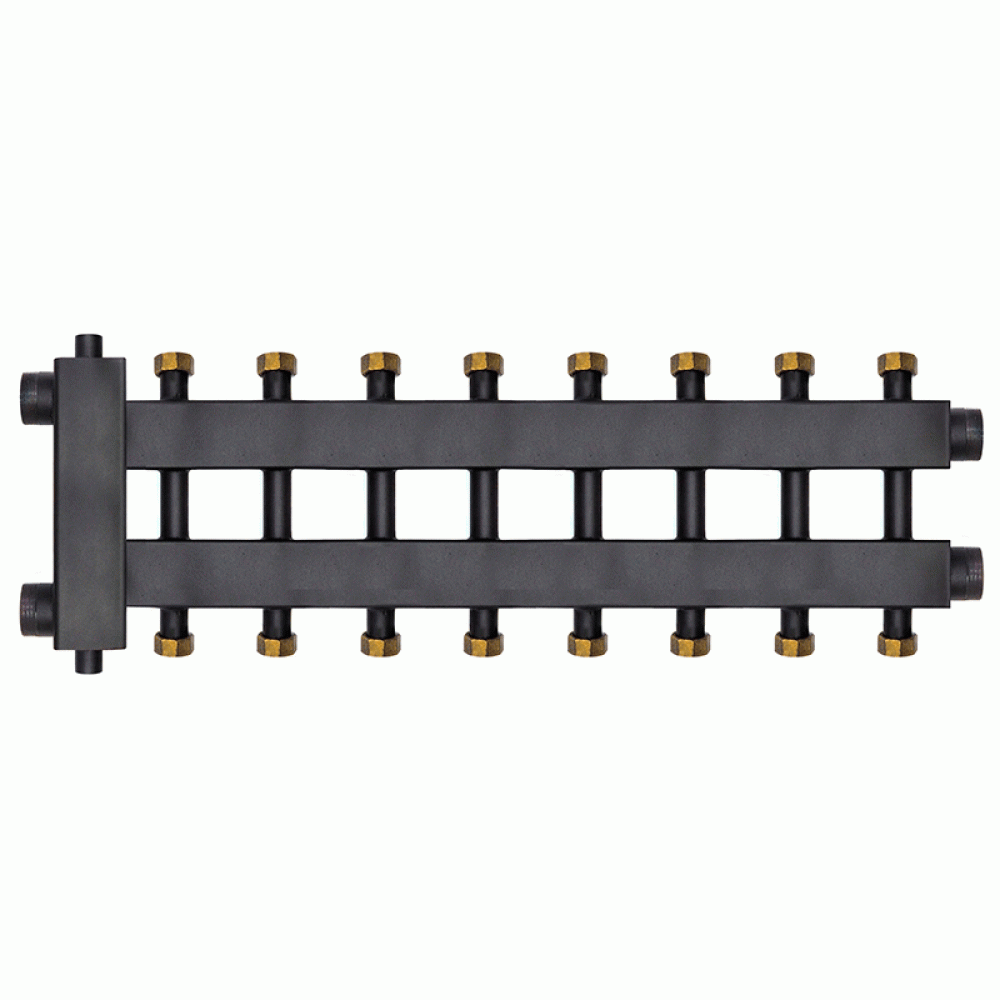 Коллектор с гидроразделителем Warme WKD.R.85.К.F.4+4+1 (Дублер компакт) черная сталь на 9 контуров до 85 кВт с накидными гайками