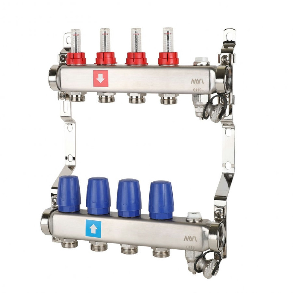Коллектор с расходомерами дренажным краном и воздухоотводчиком MVI 1"х3/4"ЕК 4 выхода