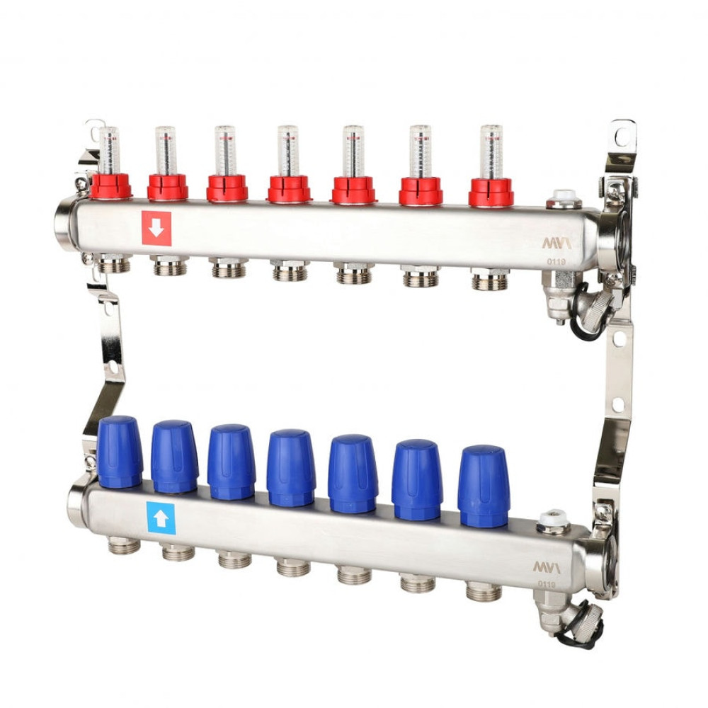 Коллектор с расходомерами дренажным краном и воздухоотводчиком MVI 1"х3/4"ЕК 7 выходов