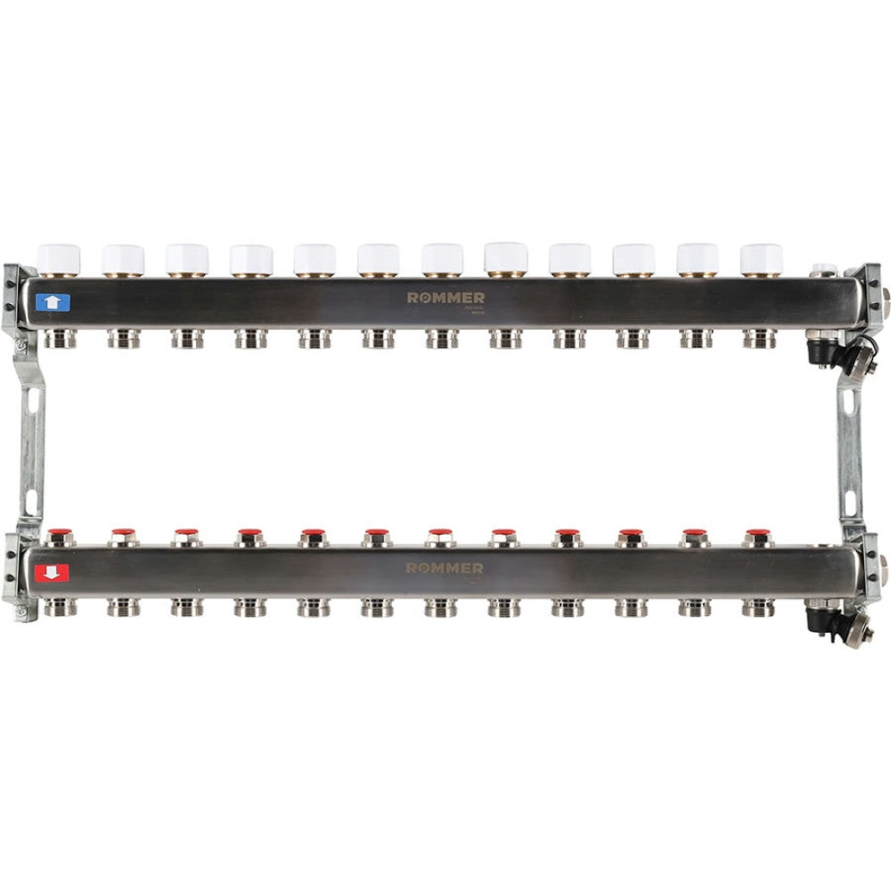 Коллектор с запорными клапанами и кранами Rommer 1"x3/4" 12 контуров