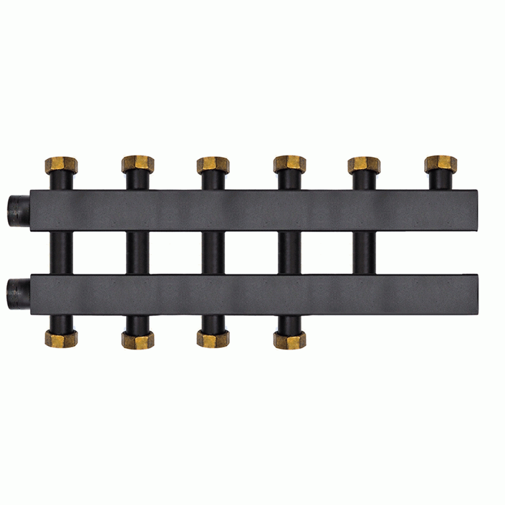 Коллектор Warme WKD.140.К.F.3+2 Дублер компакт (черная сталь) на 5 контуров 90-140 кВт с накидными гайками