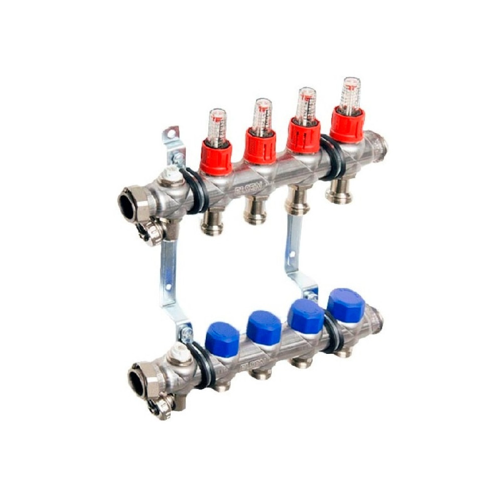 Коллекторная группа Elsen EMi03 1"х3/4", 3 контура из нерж. стали с вентилями и расходомерами (арт. EMi03.03) служит для распределения потоков питьевого и хозяйственно-бытового водоснабжения, в системах радиаторного и напольного отопления, а также для организации настенного и потолочного отопления и охлаждения.