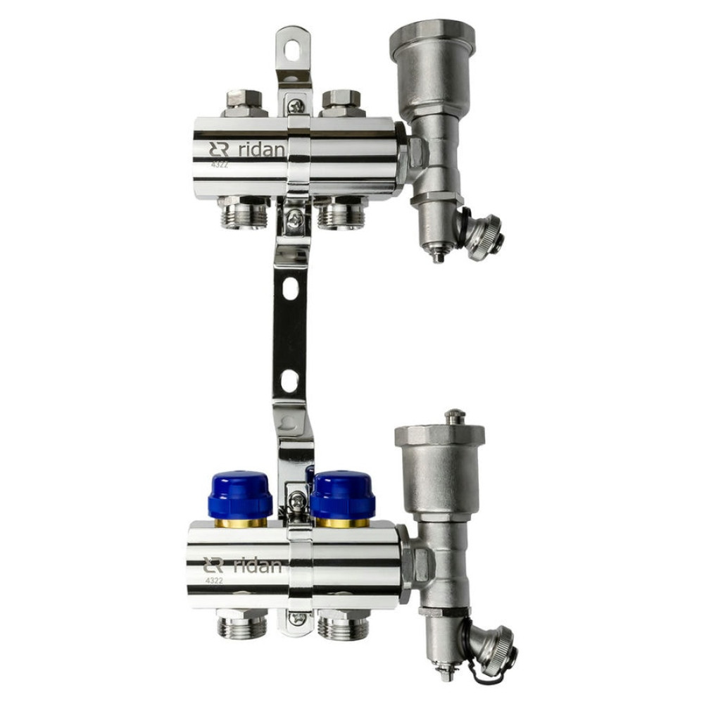 Коллекторная группа FHF-R, на 2 выхода, с воздухоотводчиками, с кронштейнами, Ридан 088U0702R