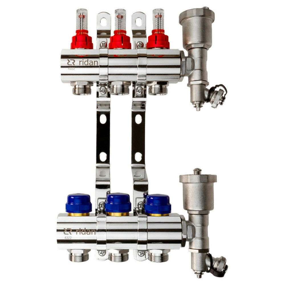 Коллекторная группа FHF-RF на 3 выхода, с расходомерами, с воздухоотводчиками, с кронштейнами, Ридан 088U0723R