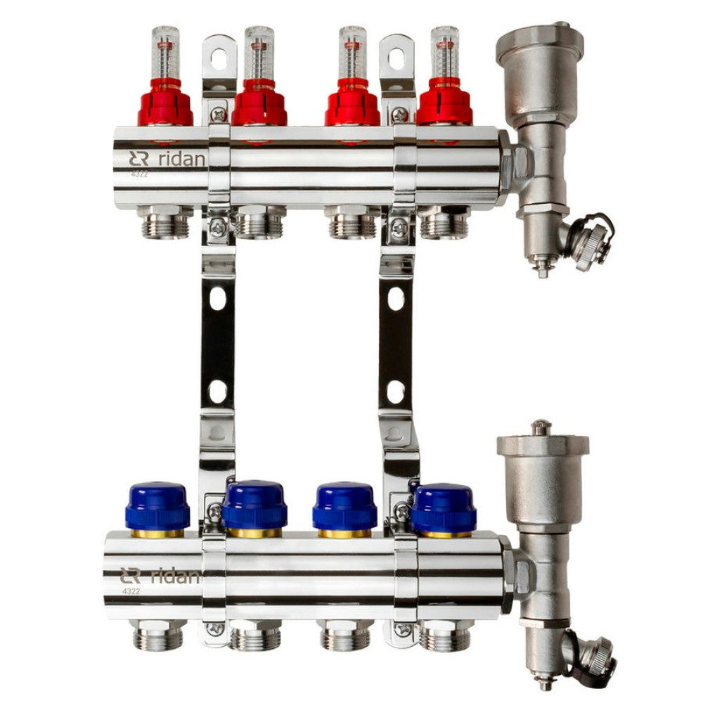 Коллекторная группа FHF-RF на 4 выхода, с расходомерами, с воздухоотводчиками, с кронштейнами, Ридан 088U0724R