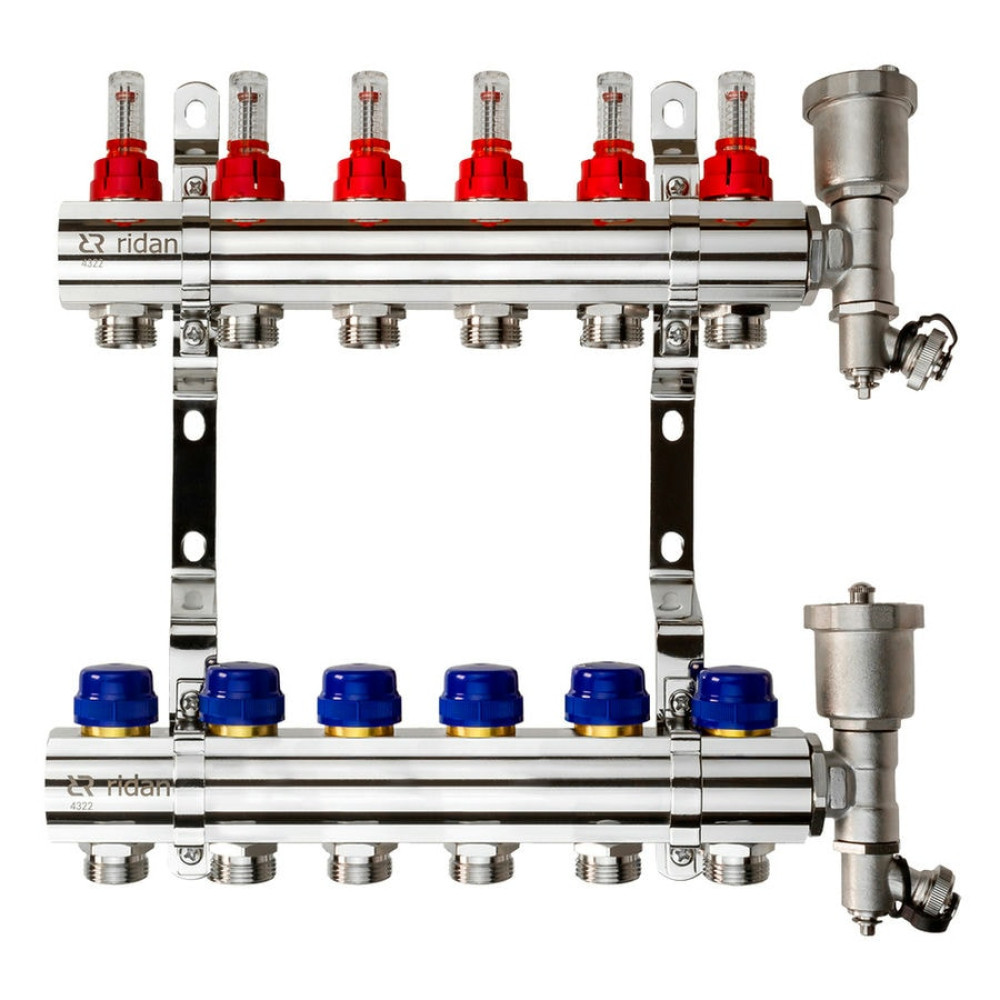 Коллекторная группа FHF-RF на 6 выходов, с расходомерами, с воздухоотводчиками, с кронштейнами, Ридан 088U0726R