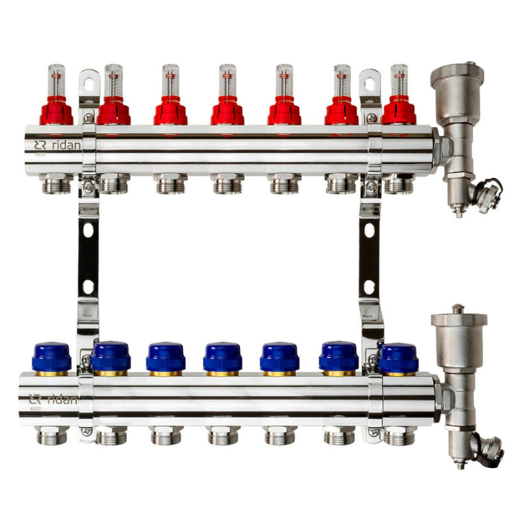 Коллекторная группа FHF-RF на 7 выходов, с расходомерами, с воздухоотводчиками, с кронштейнами, Ридан 088U0727R