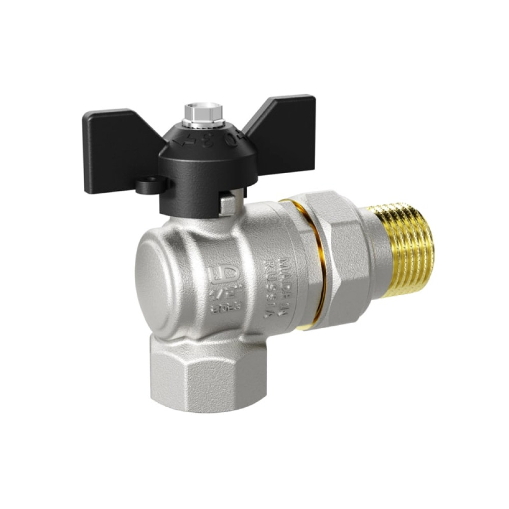 Кран шаровой угловой LD с американкой ВР/НР резьба 1/2" ручка-бабочка