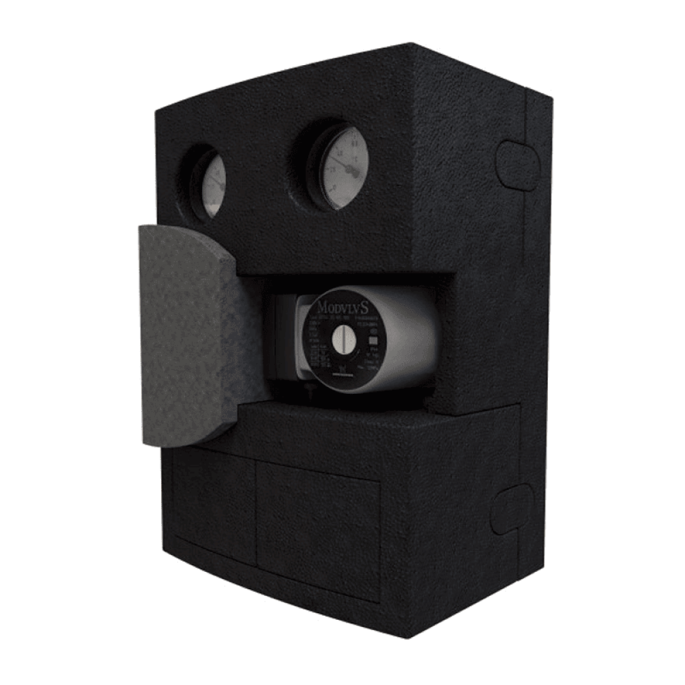 Насосная группа прямая, без возможности подмеса предназначена для распределения теплоносителя на высокотемпературные контуры-потребители (радиаторы, бойлер ГВС, теплообменник бассейна, вентиляции и т.д.).Запорные краны имеют встроенные термометры, дополнительно в кран на обратной ветке встроен обратный клапан.