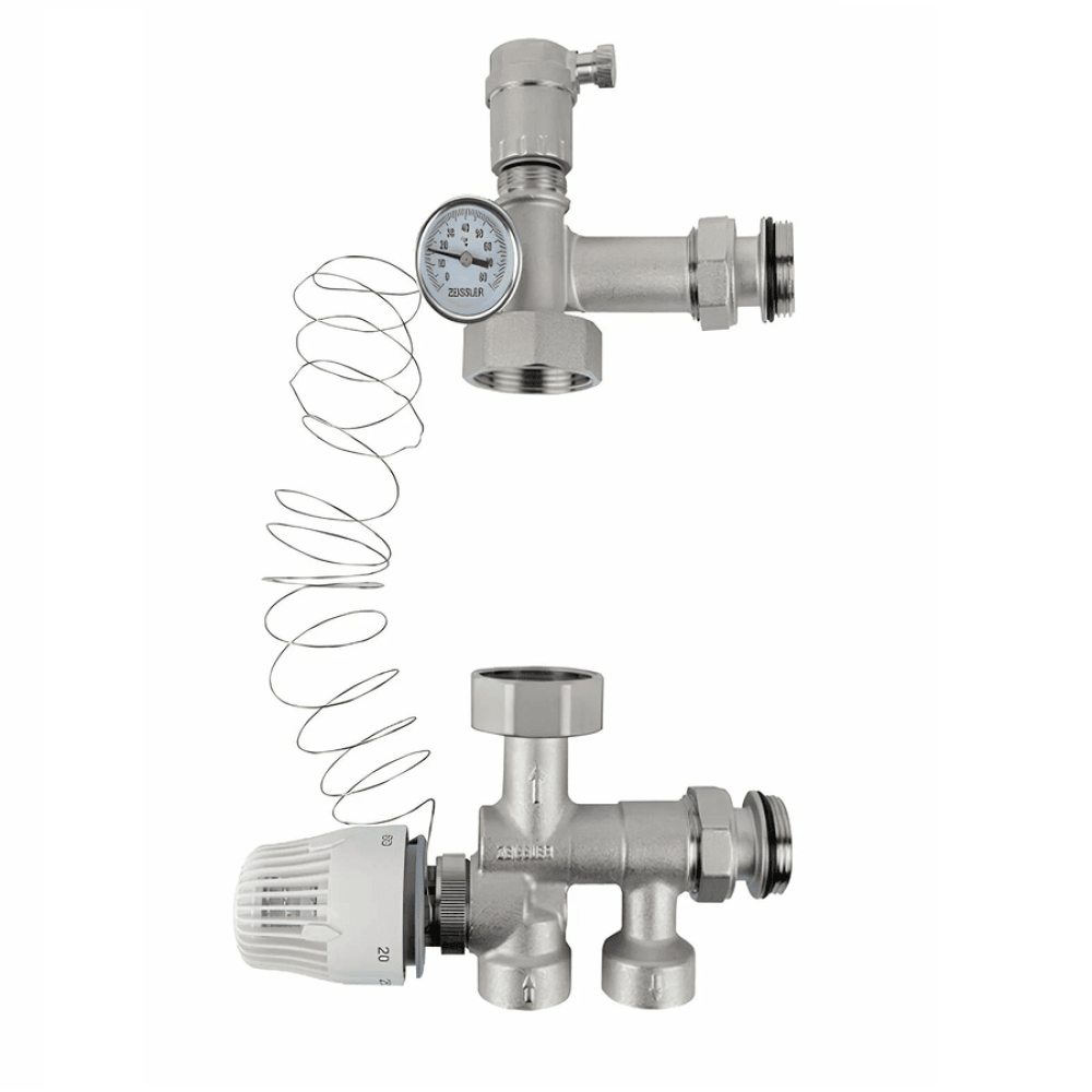 Насосно-смесительный узел Zeissler MINIПредназначен для создания низкотемпературных систем отопления ("теплый пол"). Монтируется на коллекторной группе низкотемпературного контура, подключается к высокотемпературному контуру системы отопления.