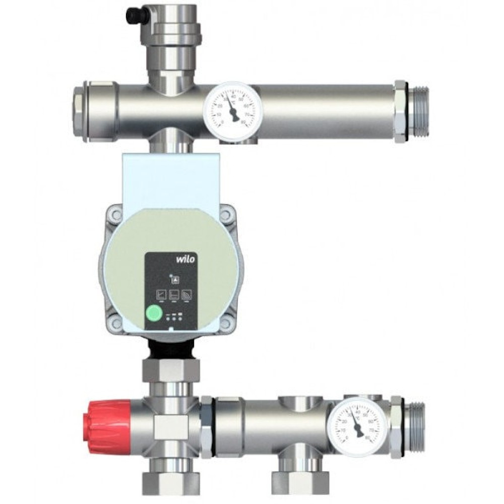 Насосно-смесительный узел ELSEN без насоса и байпаса позволяет точно и эффективно регулировать температуру и расход теплоносителя с целью поддержания пониженной температуры в контуре теплого пола. Он обеспечивает увязку первичного и вторичного контуров, благодаря чему вся система функционирует стабильно и слажено. Рассчитан на помещения площадью до 200 м2.