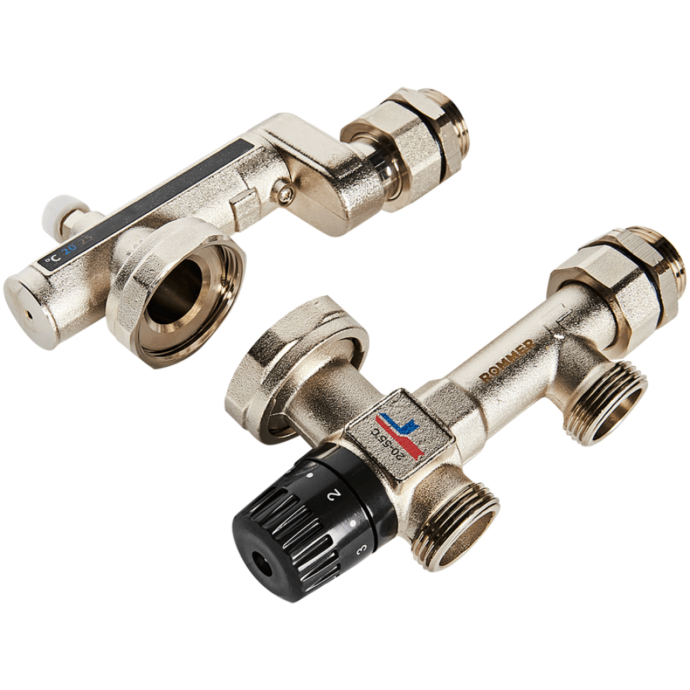 Насосно-смесительный узел с 3-х ходовым термостатическим клапаном ROMMER представляет собой полностью готовое к использованию решение. Он предназначен для обеспечения эффективной циркуляции и поддержания стабильной температуры теплоносителя в диапазоне 20-55 °С, что делает его идеальным для низкотемпературных систем отопления, таких как «теплый пол».