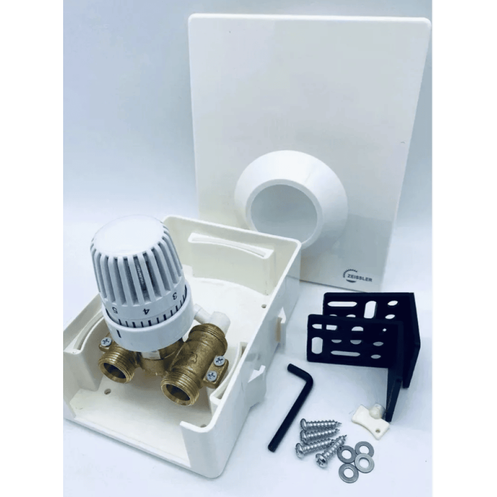 Встроенные клапаны и термостатические головки, поставляемые в комплекте, автоматически поддерживают заданную пользователем температуру воздуха(7-28°С) и температуру теплоносителя возвращаемого из контура теплого пола(10-40°С)