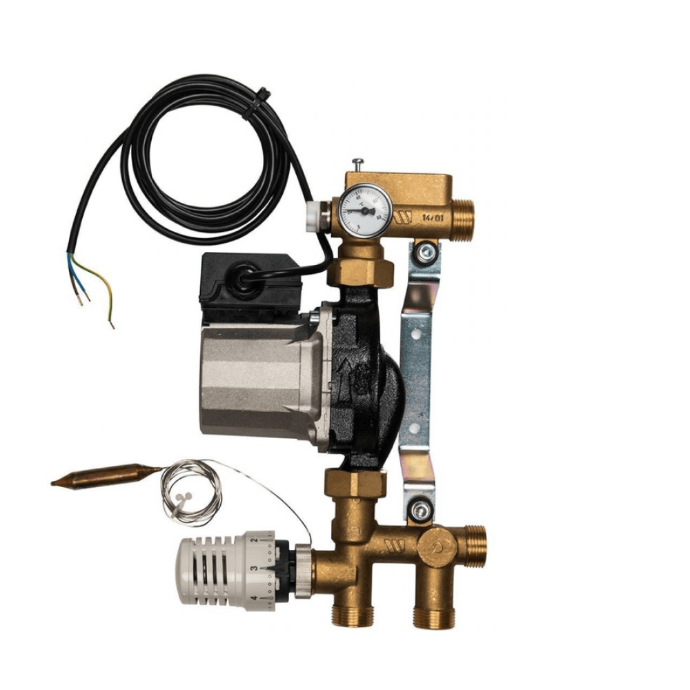 Насосно-смесительная группа Watts Ind FRG 3005F представляет собой регулирующий модуль для теплых полов небольшой площади (до 50 кв. метров) и применяется для поддержания постоянной температуры подачи. Температура подачи устанавливается бесступенчато при помощи термоголовки в диапазоне 20-70 оC. Возможна фиксация минимального и максимального пределов регулирования температуры. Термометр модуля показывает текущее значение температуры подачи. Регулирующий модуль применяется в комбинированных системах отопления, т.е. в системах, включающих в себя контур высокотемпературного отопления (радиаторы, конвекторы) и контур низкотемпературного отопления (напольное отопление). При этом теплоноситель поступает в оба контура по одному трубопроводу.