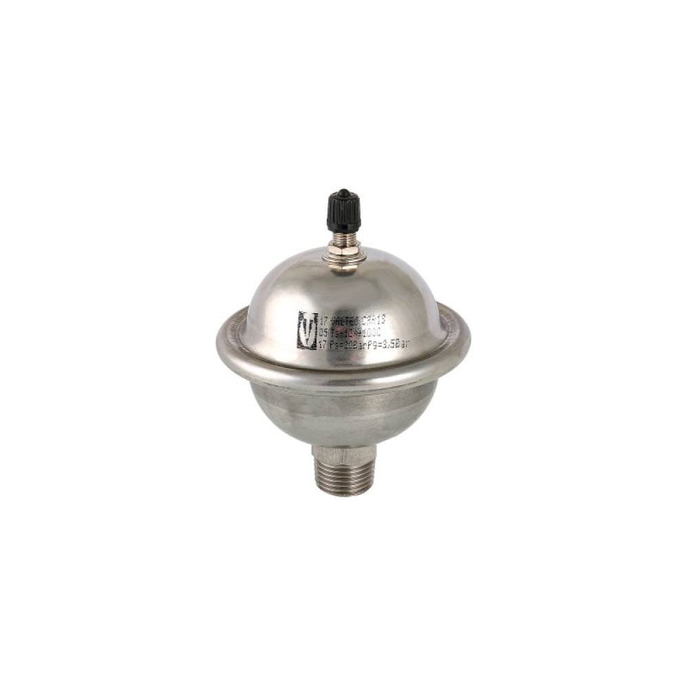 Мембранный гаситель гидроударов VT.CAR 19 предназначен для компенсации скачков давления, возникающих при резком открытии или закрытии запорной арматуры в квартирных системах водоснабжения. Устройство также играет роль расширительного бака, принимающего избыток объема воды, который возникает в трубах при естественном нагреве в отсутствие водоразбора. Компенсатор гидроударов VT.CAR 19 представляет собой миниатюрный бак из нержавеющей стали марки AISI 304L с внутренней разделительной мембраной из эластомера EPDM. Небольшие выпуклости на поверхности мембраны обеспечивают ее неплотное примыкание к корпусу и максимальную площадь контакта мембраны с транспортируемой средой. Емкость гасителя гидравлических ударов VT.CAR 19 – 0,162 л, заводская настройка давления в воздушной камере – 3,5 бара, максимальное рабочее давление в защищаемом квартирном водопроводе – 10 бар, предельное давление при гидроударе – 20 бар, максимальная рабочая температура – 100 °С. Диаметр присоединительной резьбы – 1/2". Размеры (высота х диаметр) изделия – 112 х 88, мм. Заводская настройка обеспечивает защиту трубопроводов с номинальным рабочим давлением 3 бара. При использовании компенсатора в системах с другими параметрами следует перенастроить бак таким образом, чтобы давление в воздушной камере превышало номинальное на 0,5 бара.