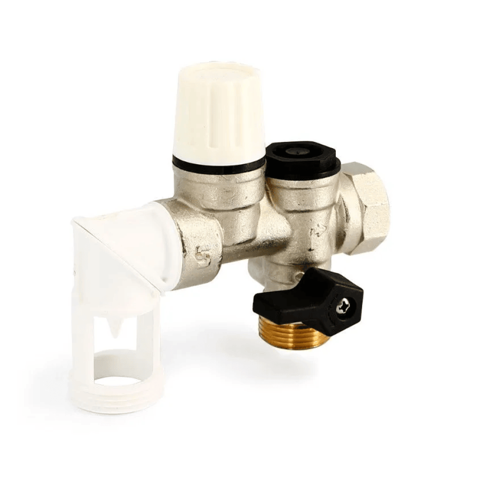 Наличие поворотного выпуска позволяет устанавливать группу безопасности с водонагревателями вертикальной или горизонтальной типами установки. Оснащение выпуска устройством разрыва струи разрешает его подключение к системе водоотведения.