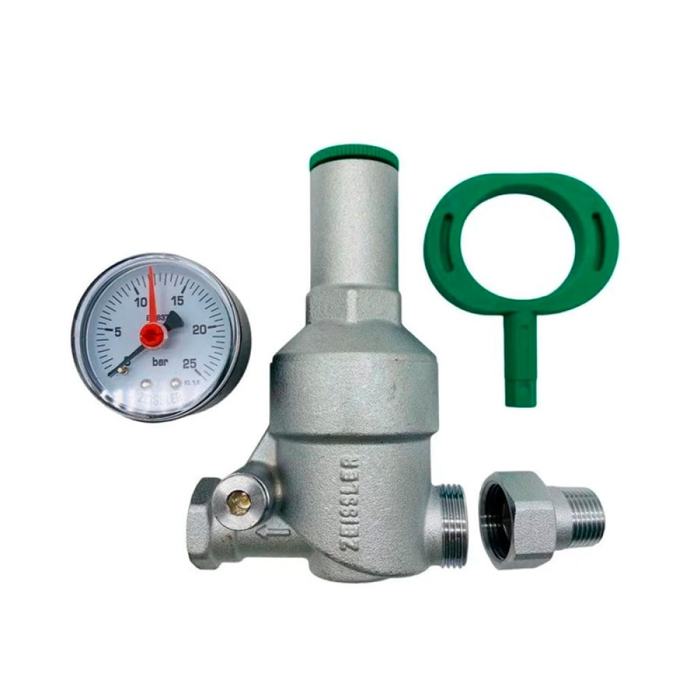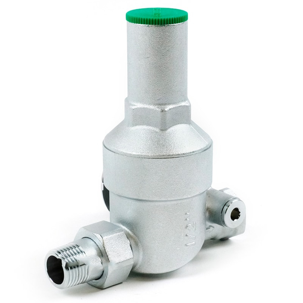 Встроенный фильтр механической очистки защищает детали уплотнений поршней от быстрого износа. Наличие манометра-индикатора позволяет контролировать давление в сети после регулятора. Регулятор ограничивает расход по потребителям в пределах проектных объёмов, что исключает вероятность того, что в часы максимального водоразбора удалённые точки сети окажутся без водоснабжения. Основная область применения – квартирные узлы ввода холодного и горячего водопровода.