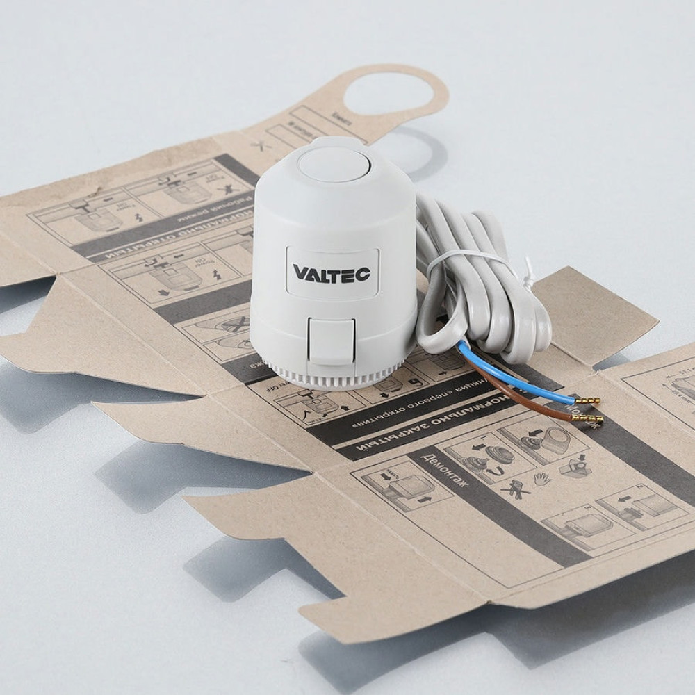 Электротермический двухпозиционный сервопривод VT.TE3043.A.220 применяется для автоматического управления радиаторным или коллекторным термостатическим клапаном систем водяного отопления (в том числе теплого пола) и охлаждения зданий. Действие привода основано на расширении заполняющего сильфон армированного парафина при протекании электрического тока через встроенный нагревательный элемент по сигналу от комнатного термостата или контроллера.