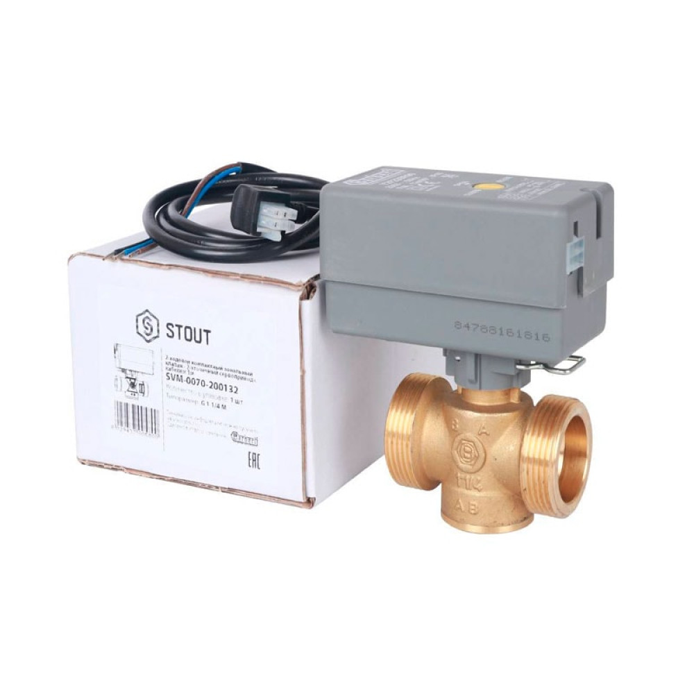 Клапан 2х-ходовой с сервоприводом 230В Stout SVM-0070-200132 НР 1 1/4"