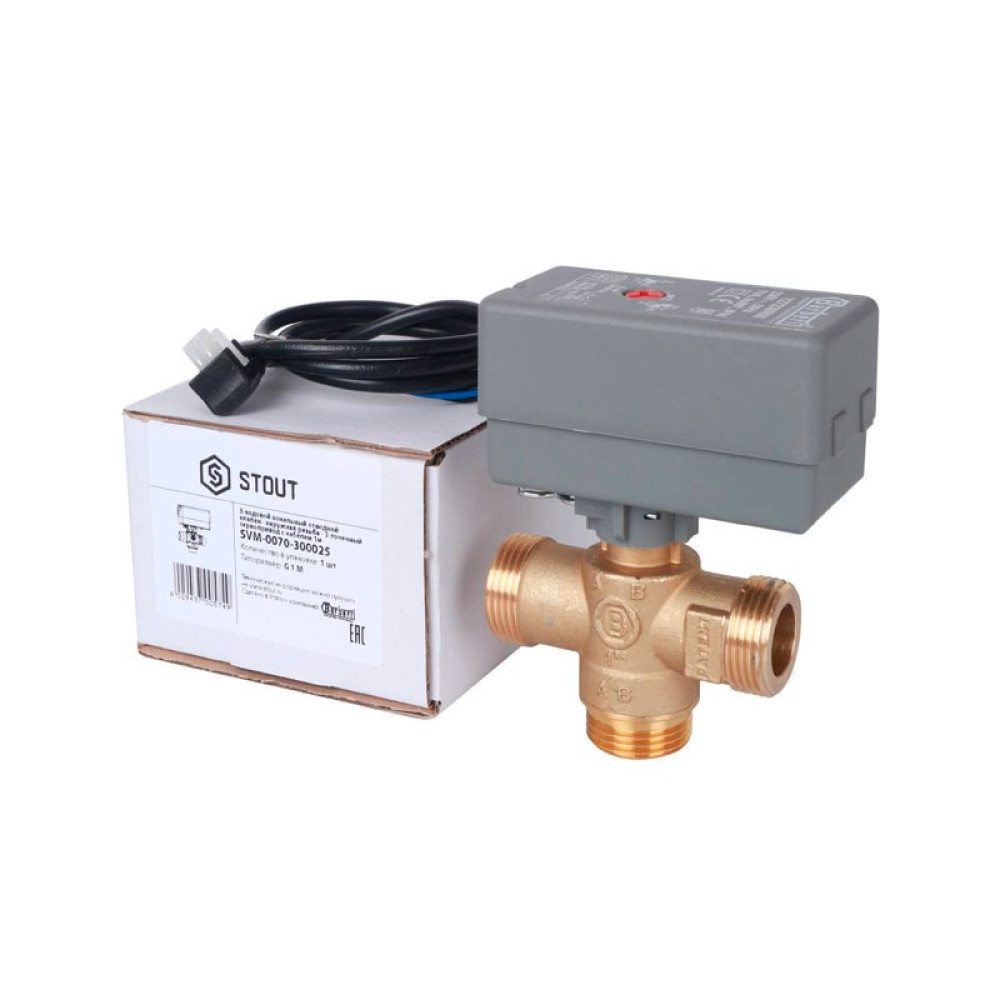 Клапан 3х-ходовой с сервоприводом 230В Stout SVM-0070-300025 НР 1"