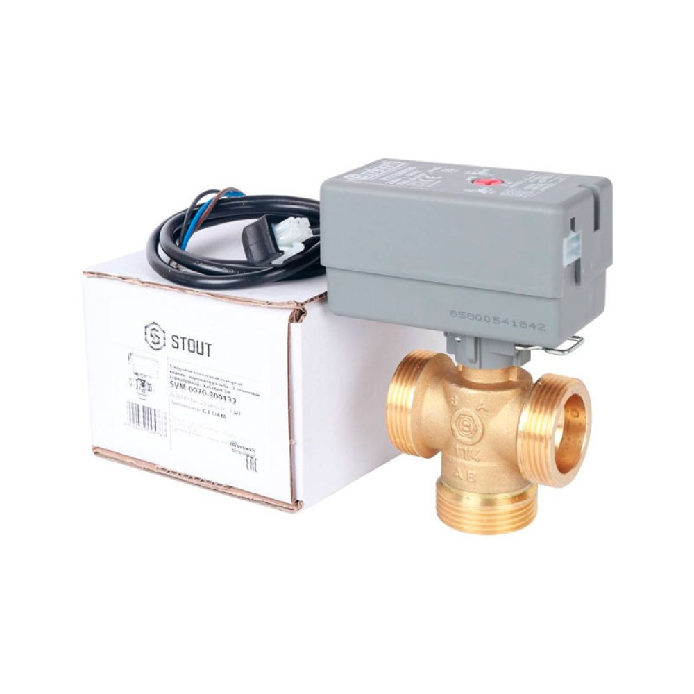 Клапан 3х-ходовой с сервоприводом 230В Stout SVM-0070-300132 НР 1 1/4"