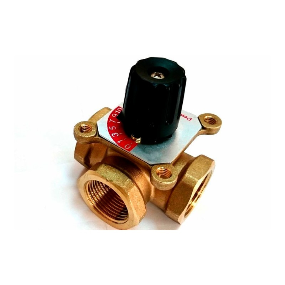 Этот клапан способен выполнять функции смешивания потоков или их разделения. Для удобства ручного управления он оснащён рукояткой и ограничителем угла поворота в 90°. Поворот заслонки в одну сторону открывает проход для тёплой жидкости и закрывает проход для холодной, тем самым повышая температуру смешиваемой рабочей жидкости при практически неизменной скорости потока. Необходимая температура в системе достигается посредством добавления нужного количества жидкости, поступающей из обратного трубопровода, который подключается к котлу.