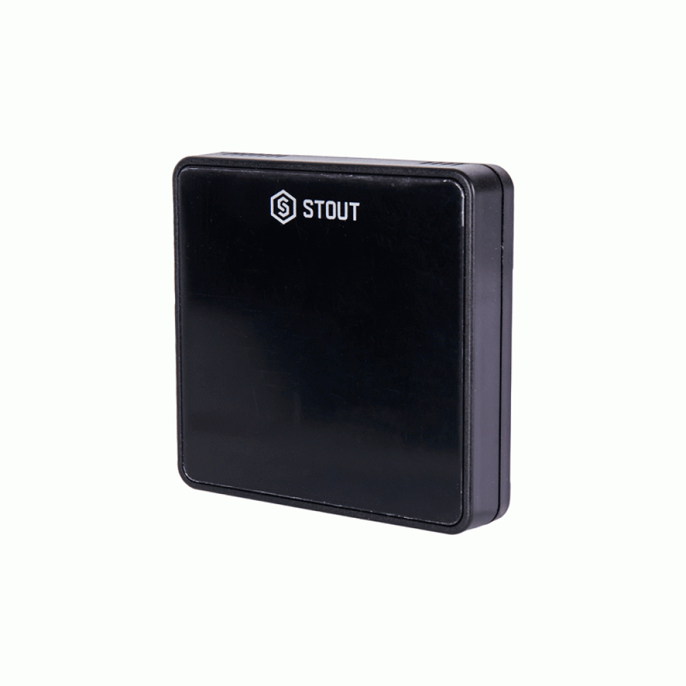Беспроводной комнатный датчик Stout C-8r, черный. Предназначен исключительно для работы с монтажной планкой L-8e. Не требует подключения к электросети и работает от двух батареек формата ААА.