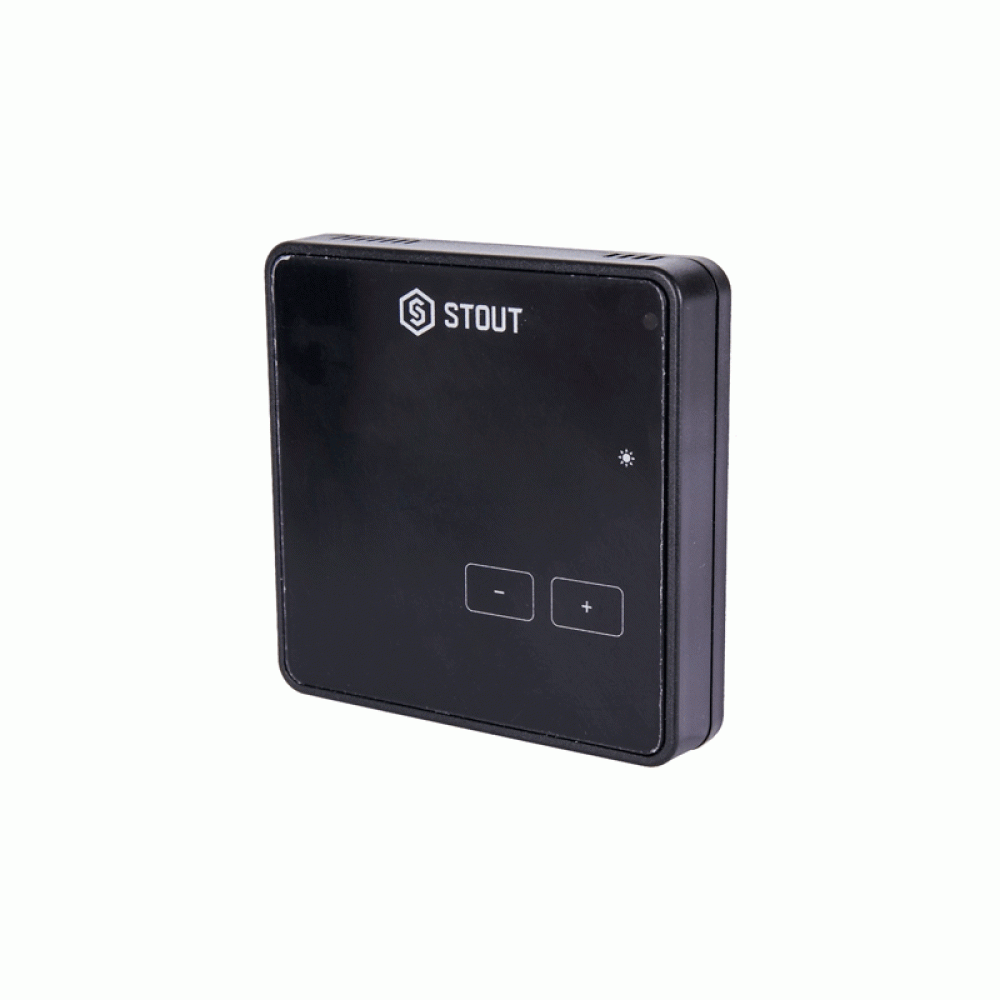 Проводной комнатный регулятор R-10z, черный STOUT предназначен для регулирования комнатной температуры. Питание происходит от контроллера L-10. Оборудован ЖК-дисплеем с подсветкой, регулировкой яркости и встроенным датчиком температуры.