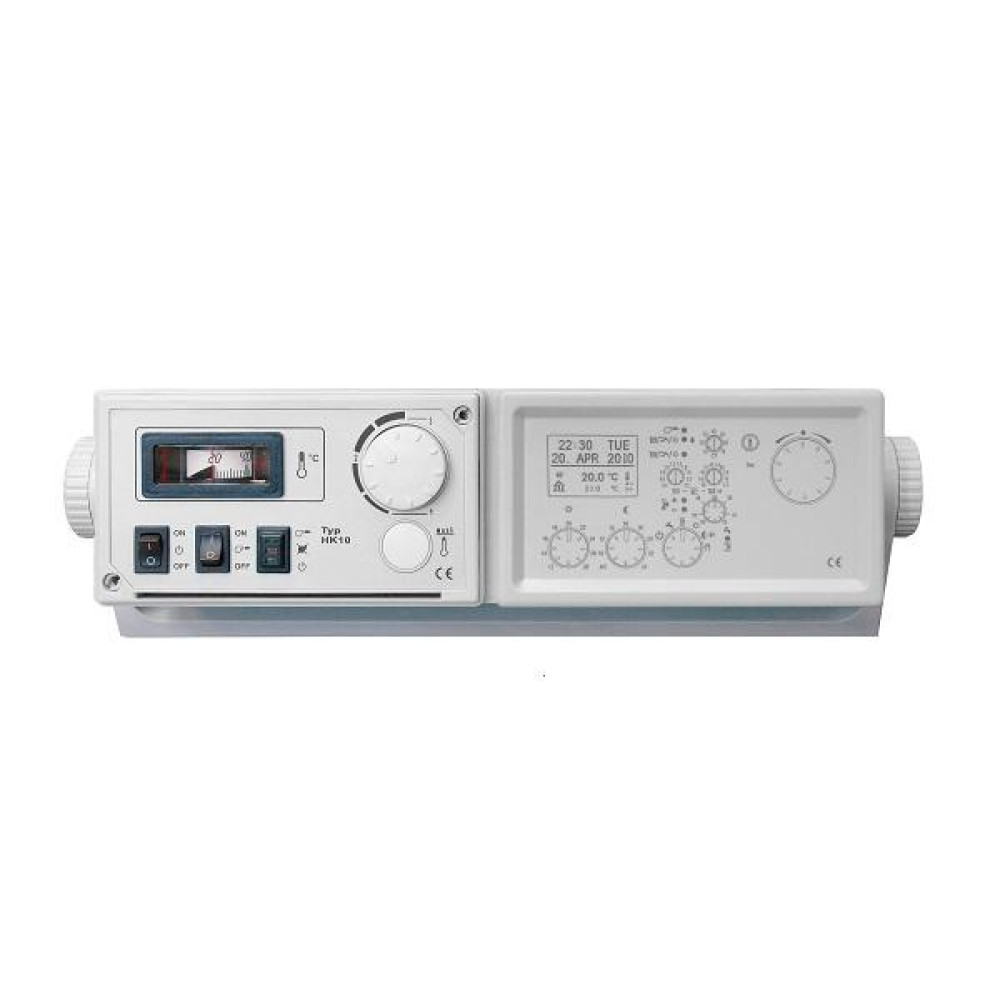 Панель управления отоплением оборудована следующими устройствами: главный выключатель, выключатель горелки, термостат регулировки отопления, предохранительный термостат, термометр, индикатор блокировки горелки. Также предусмотрена возможность подключения комнатного термостата.