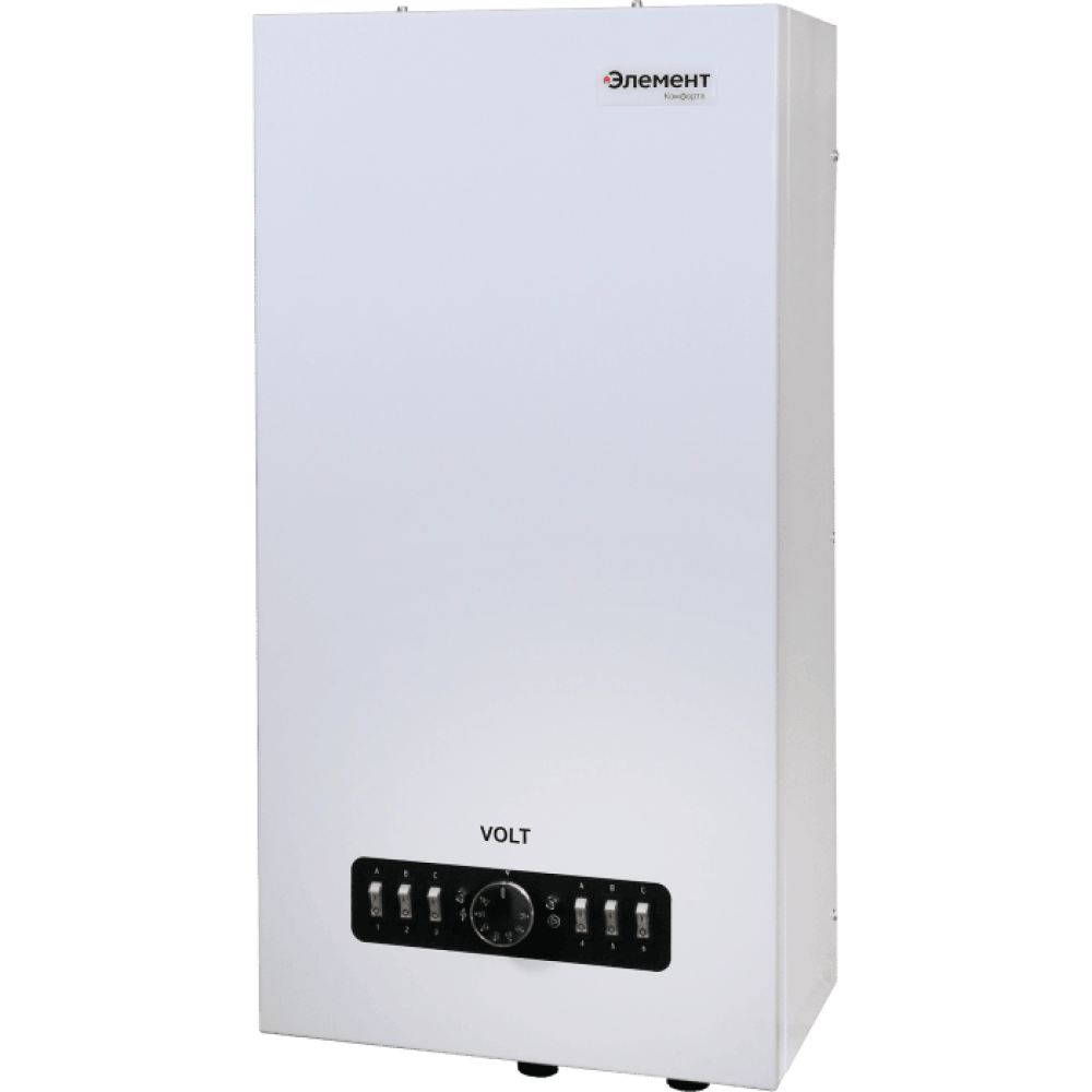 Настенный электрический котел Элемент Комфорта VOLT-18 - одноконтурная мини котельная для обогрева помещений площадью до 180 кв.м. Подходит для обогрева как жилых так и промышленных помещений. Оснащен 6 (шестью) ступенями мощности, что позволяет выбрать оптимальный режим работы котла. В комплектацию котла входят циркуляционный насос, расширительный бак, группа безопасности.