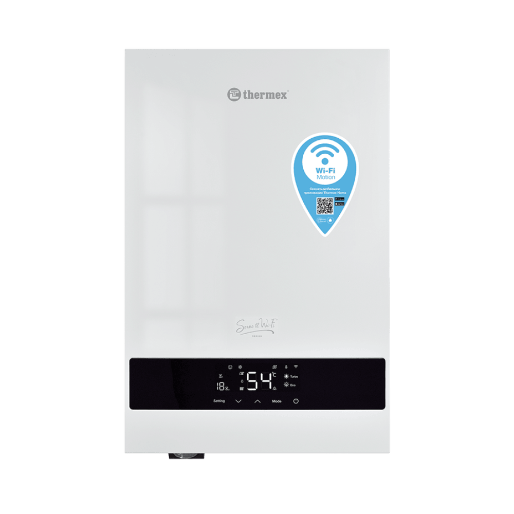 THERMEX (Термекс) Sonne 12 Wi-Fi (Grey) представляет собой электрический котел отопления, выполненный в компактном металлическом корпусе черного цвета. Модель оснащена модулем Wi-Fi, благодаря чему управлять ею можно при помощи смартфона. Также доступно управление с голосовым помощником Алиса. Циркуляционный насос встроен.