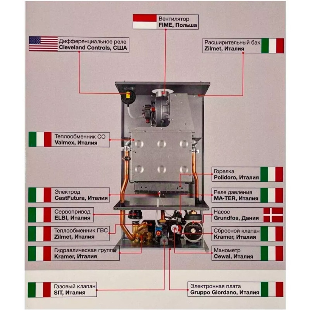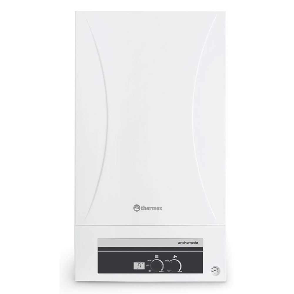 Thermex Andromeda HM это газовый настенный котел с превосходной передачей тепла с медным первичным теплообменником, с высокой эффективностью, долговечностью. Пластинчатый теплообменник ГВС из нержавеющей стали.