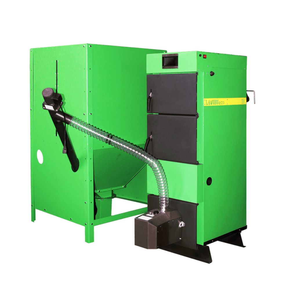 Пеллетный котел Lavoro ECO серии LF — это современный стальной водогрейный котел, работающий в полностью автоматическом режиме, предназначенный для отопления жилых и производственных помещений, а также для обеспечения горячей водой (ГВС). В котел встроена современная факельная горелка импортного производства из специальной нержавеющей стали толщиной от 5мм. В качестве топлива используются пеллеты (за исключением пеллет из отходов мебельного производства) или дрова (как резервное топливо), котел оснащен бункером для их загрузки и шнеком для их подачи в горелку. Управление производится при помощи автоматики, также возможно дистанционное управление котлом (доп. опция). Горелка по умолчанию оснащена механизмами: автоочистки и авторозжига.