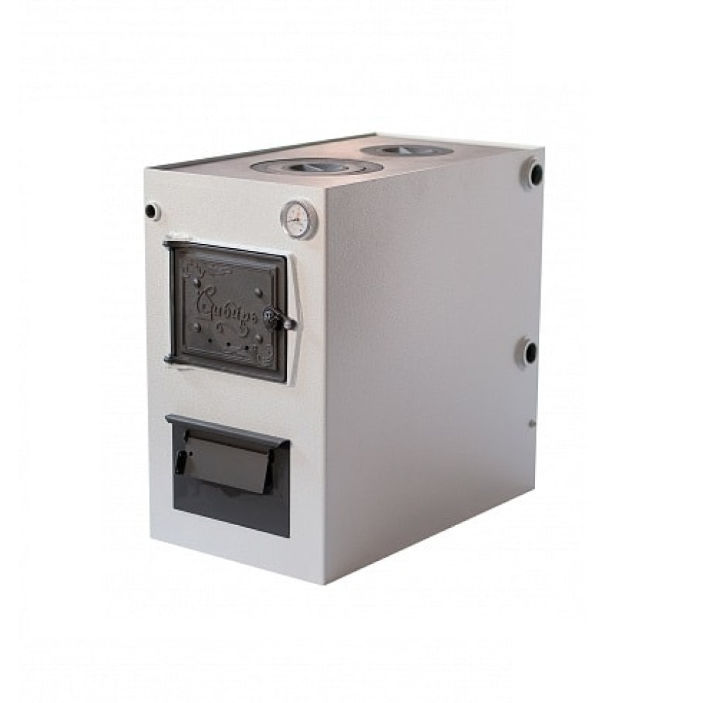 На данный котел существует возможность установки автоматического регулятора тяги подачи воздуха. Отличительной особенностью данного котла является топочная дверца, изготовленная из чугуна с фирменным брендированным рисунком "Сибирь". С внутренней стороны дверцы установлен отбойник пламени из стали, защищающий основную дверцу от избыточной термической нагрузки и деформации. В процессе эксплуатации дверца плотно закрывается и открывается, не провисает и не ржавеет. Это дает дополнительную эстетику, необходимую в современном загородном доме. Котел водяного отопления "Сибирь КВО" 20 функционирует на твердом топливе: дрова, прессованные брикеты, уголь и способен справиться с отоплением дома площадью до 200 м2, оборудованного системой водяного отопления с естественной или принудительной циркуляцией. Рабочее давление, предусмотренное для оптимального функционирования котла "Сибирь КВО" 20 кВт составляет не более 1 Бар.