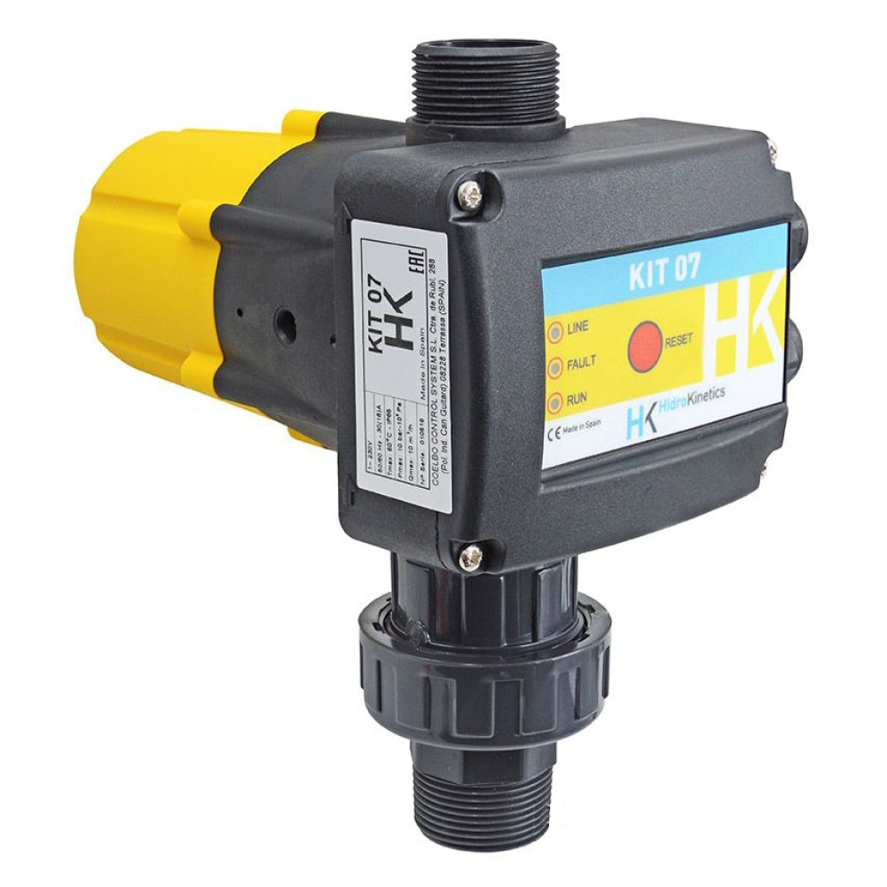 Блок контроля потока KIT 07 является комплексным устройством управления, обладающим всеми необходимыми функциями для обеспечения автоматической работы насоса и не требующим при этом установки и подключения каких-либо дополнительных устройств и приспособлений, таких как гидроаккумулятор, реле давления и т.п.