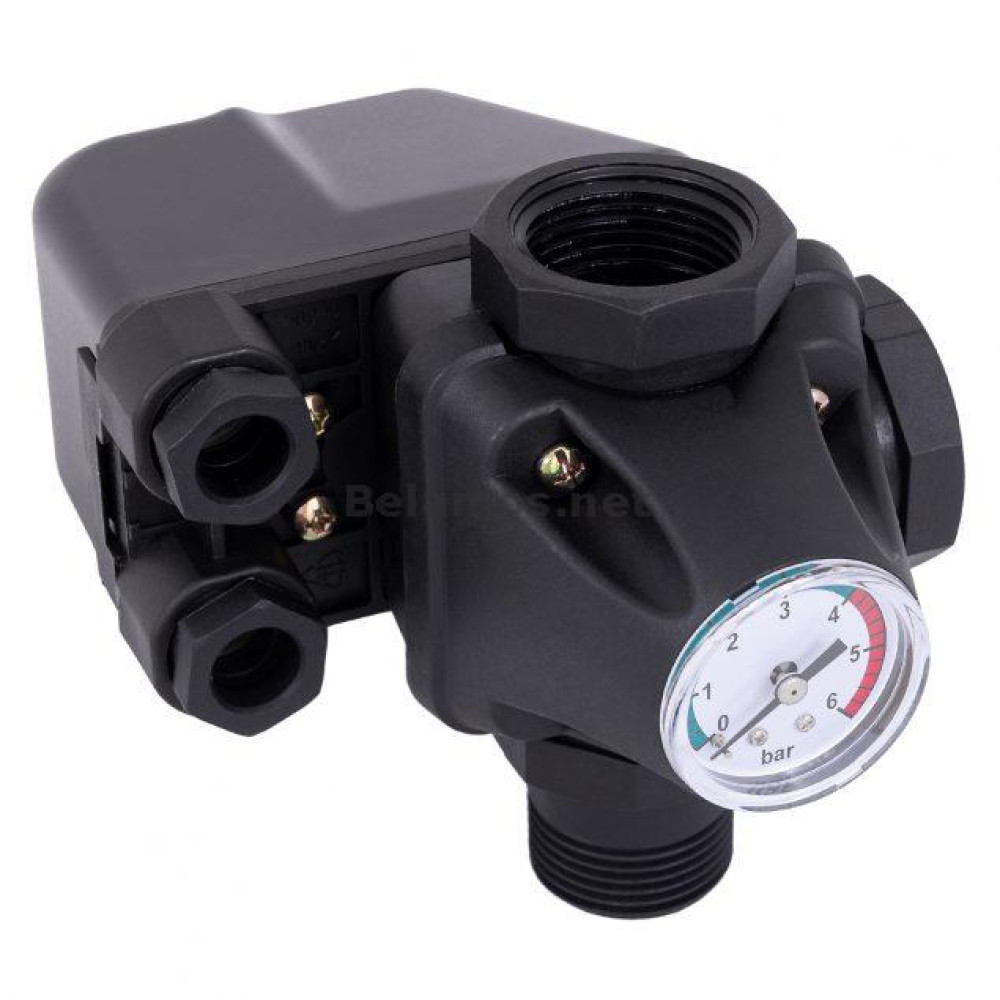 PR-10 представляет собой реле давление с манометром собранных на базе 3-х ходового фитинга, может монтироваться в системус без дополнительных монтажных операций.