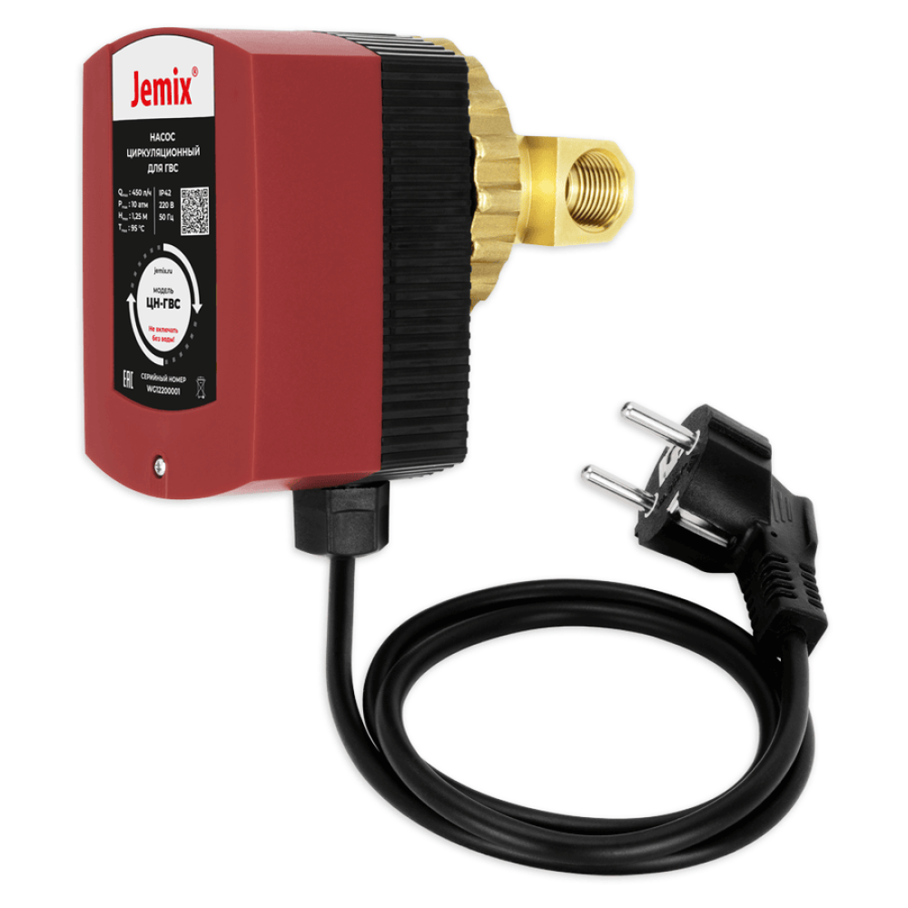 ЦН-ГВС Циркуляционный насос JEMIX для ГВС, Мощность 23 Вт. Производительность до 520 л/час. Подключение 20 мм (1/2 дюйма). Макс. подъем 1,5 м. Монтажная длина 80 мм. Кабель 1,2 м. с ЕВРОВИЛКОЙ.