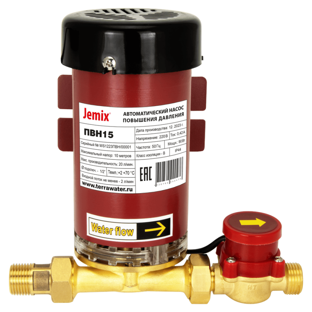 Насос повышения давления JEMIX имеет устанавливаемый на выходе из насоса пружинный датчик потока, который включает и отключает насос при наличии или отсутствии потока воды в автоматическом режиме,