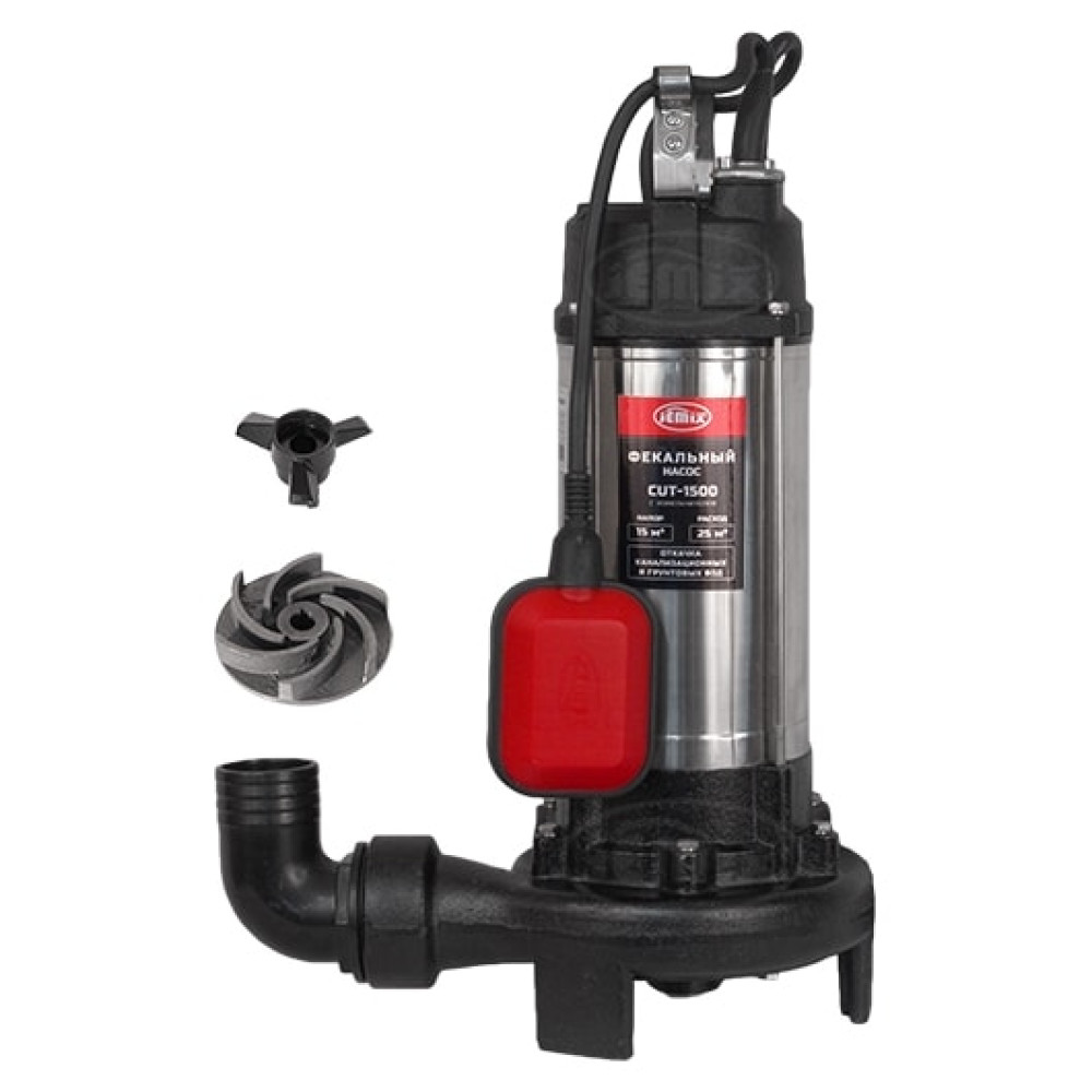 Фекальный насос JEMIX CUT-1500 предназначен для откачивания канализационных, дренажных, дождевых и грунтовых вод в том числе включающие крупные фракции.
