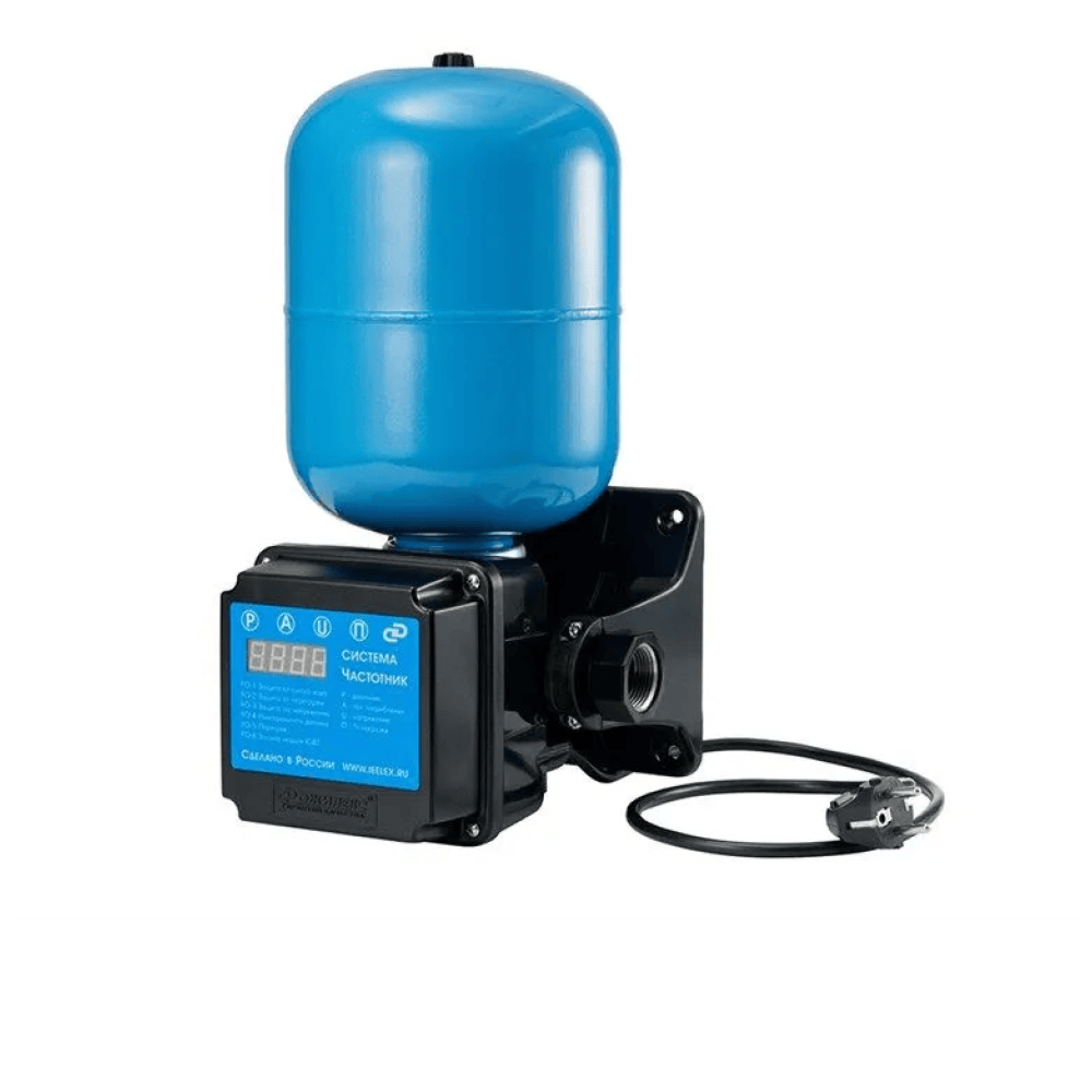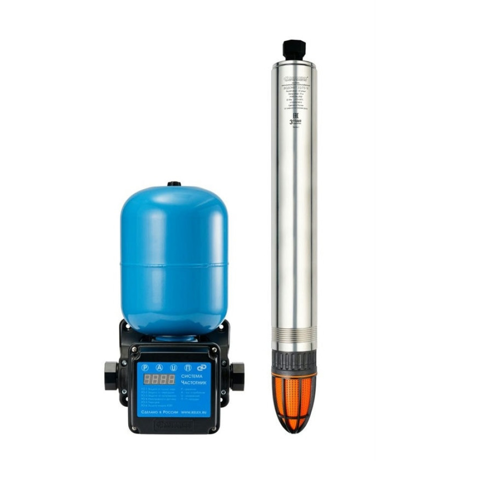 Система автоматического водоснабжения «ВОДОМЕТ» 55/75-Ч с частотным регулированием предназначена для бесперебойного водоснабжения в автоматическом режиме коттеджей, дач и ферм. Главное преимущество системы — поддержание постоянного заданного давления в водопроводной сети независимо от количества одновременно работающих точек водоразбора. В системе установлен насос, который обладает максимальным расходом 55 литров в минуту и максимальным напором 75 метров. Он способен перекачивать воду с содержанием песка во взвешенном состоянии до 2 килограмм на кубический метр воды. Электродвигатель насоса надежно защищен от перегрева потоком омывающей воды, что позволяет насосу работать не полностью погруженным в воду.