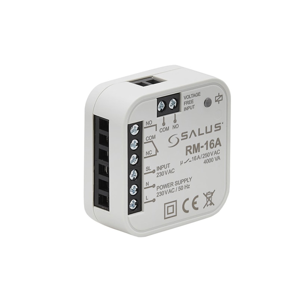 Модуль реле RM-16A используется для управления приборами, у которых рабочая токовая нагрузка превышает допустимую нагрузку управляющих термостатов. При поступлении сигнала замыкает или размыкает электрическую цепь, воздействуя на работу другого устройства. Максимальный ток не более 16 А
