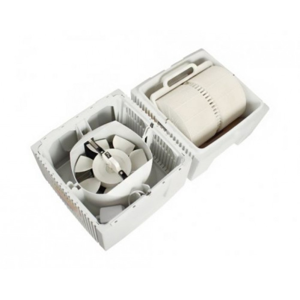 Идея, лежащая в основе мойки воздуха Venta проста как все гениальные идеи: использование воды в качестве фильтра для очистки воздуха. Пластинчатый барабан вращается в воде. Очищаемый воздух засасывается внутрь и пропускается через воду, которая удерживает даже очень маленькие частички размером от 10 микрон (10/1000 мм) такие, как: пыль, пыльца, аллергены, альдегиды табачного дыма. Одновременно чистая вода испаряется. Воздух автоматически увлажняется до необходимого уровня по принципу холодного испарения. Аппараты Venta поддерживают всегда оптимальный уровень влажности в зависимости от температуры воздуха в помещении.