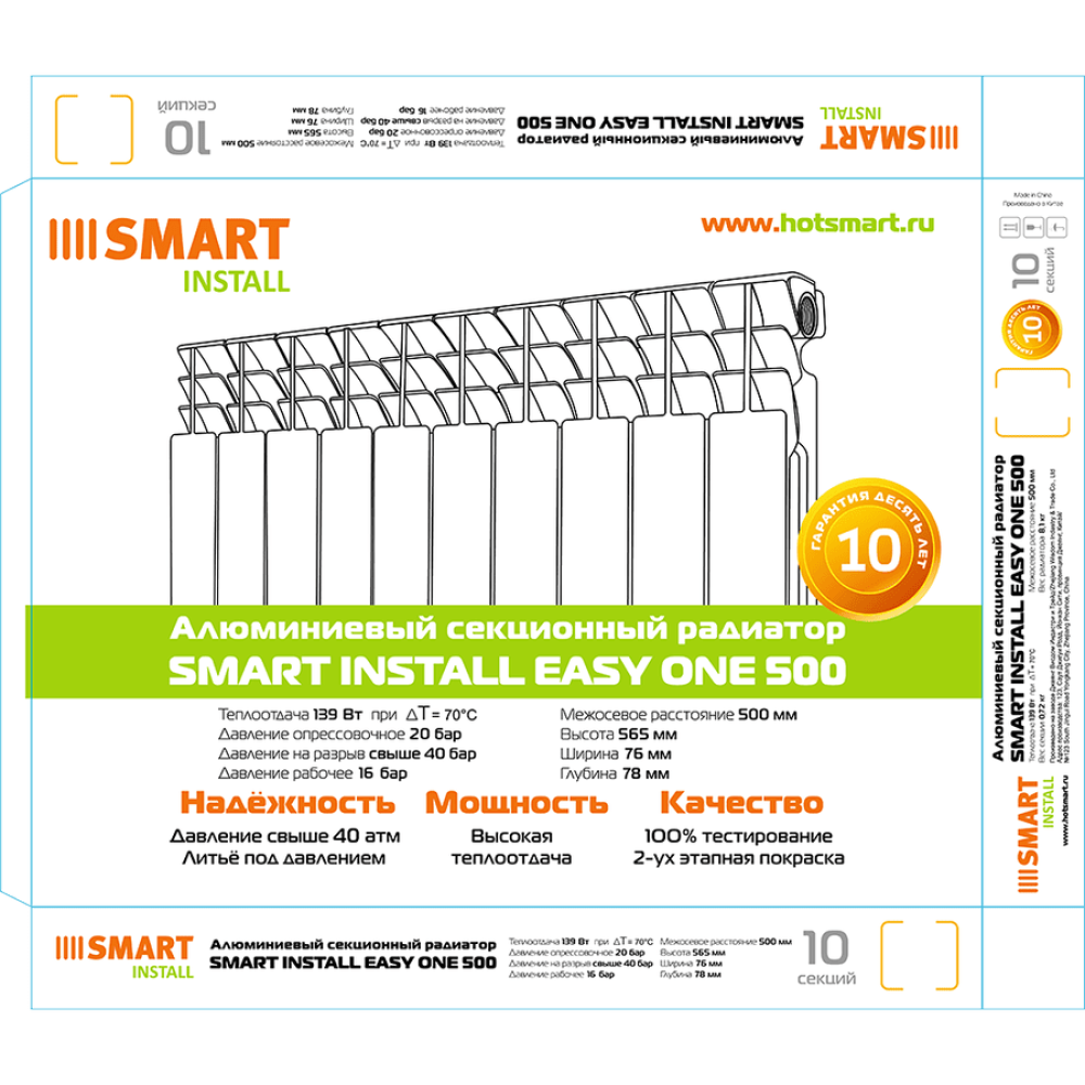 Радиаторы алюминиевый SMART Install Easy One 350 с максимально высокой теплоотдачей и быстрой способностью обогрева помещений разной площади. Идеальный вариант для экономных хозяев домов с индивидуальными закрытыми системами отопления.
