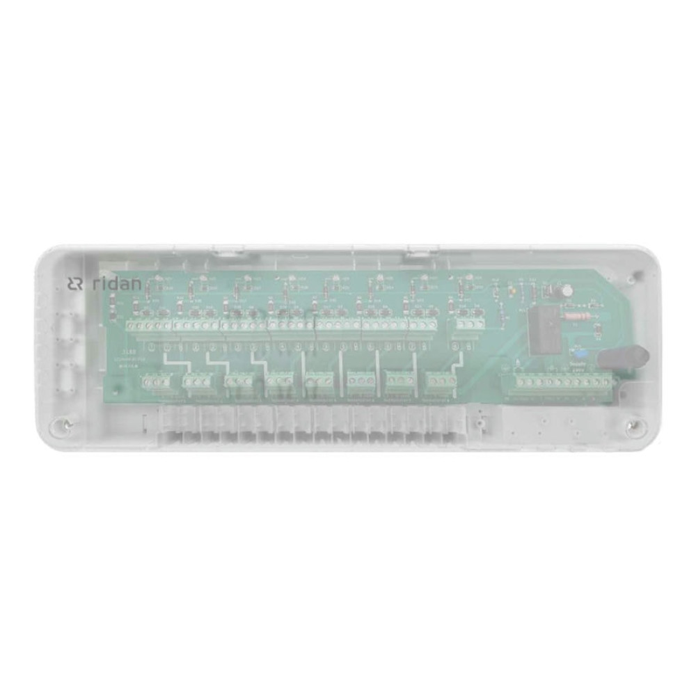 Коммутационная панель Ridan позволяет связать между собой такие компоненты системы автоматизации отопления, как: котёл, циркуляционный насос теплого пола, комнатные термостаты, термоэлектрические приводы.
